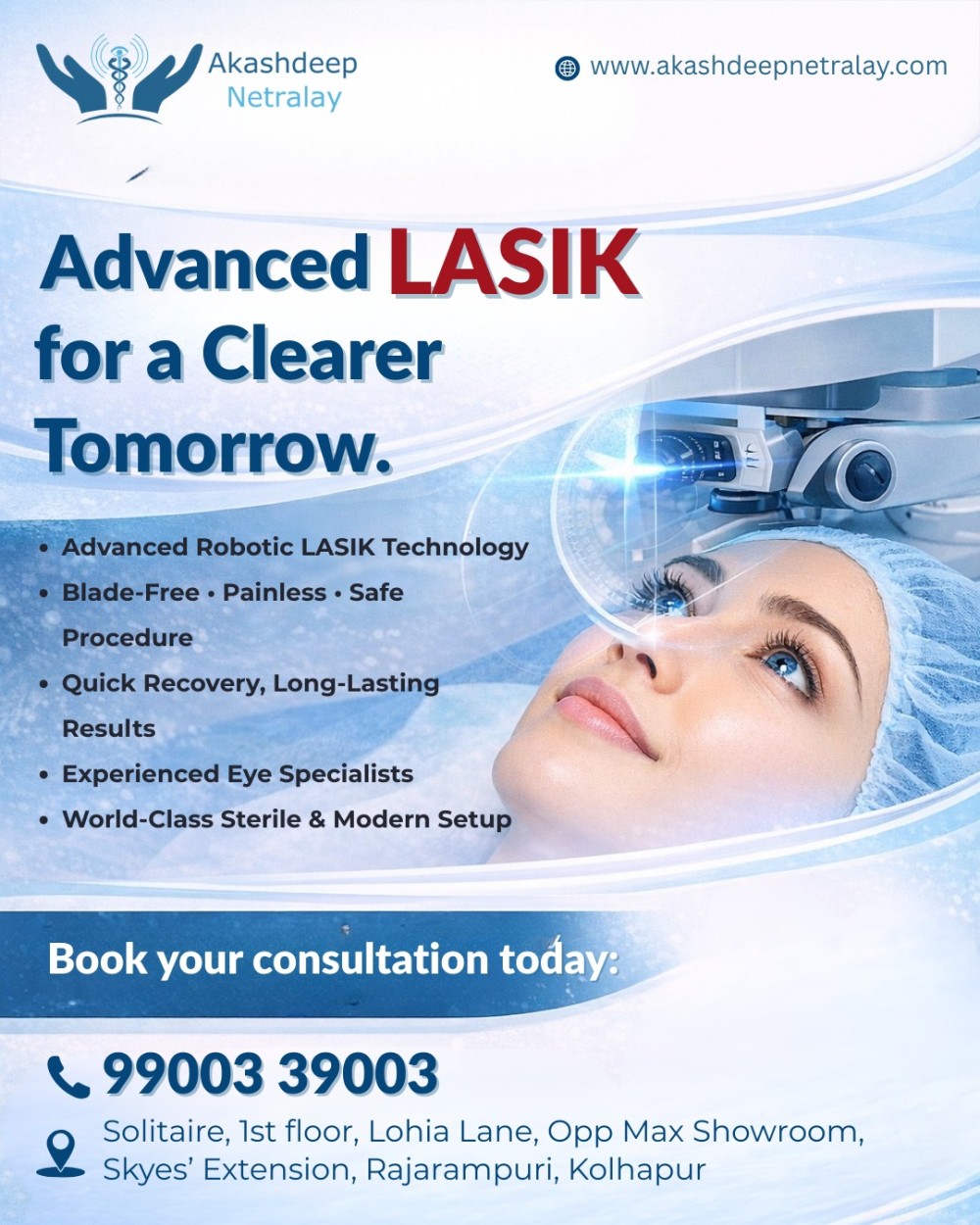 Searching for a reliable LASIK eye clinic in Kolhapur for advanced vision correction? Our clinic provides state-of-the-art laser eye surgery designed to help patients achieve clear, glasses-free vision safely and comfortably. With experienced eye specialists, modern LASIK technology, and personalized treatment plans, we ensure precise and effective results for nearsightedness, farsightedness, and astigmatism. Recognized as a trusted eye care clinic in Kolhapur, we focus on patient safety, accurate diagnosis, and post-surgery care. Book your consultation today at a leading laser eye surgery clinic in Kolhapur and take the first step toward better vision and long-term eye health.
