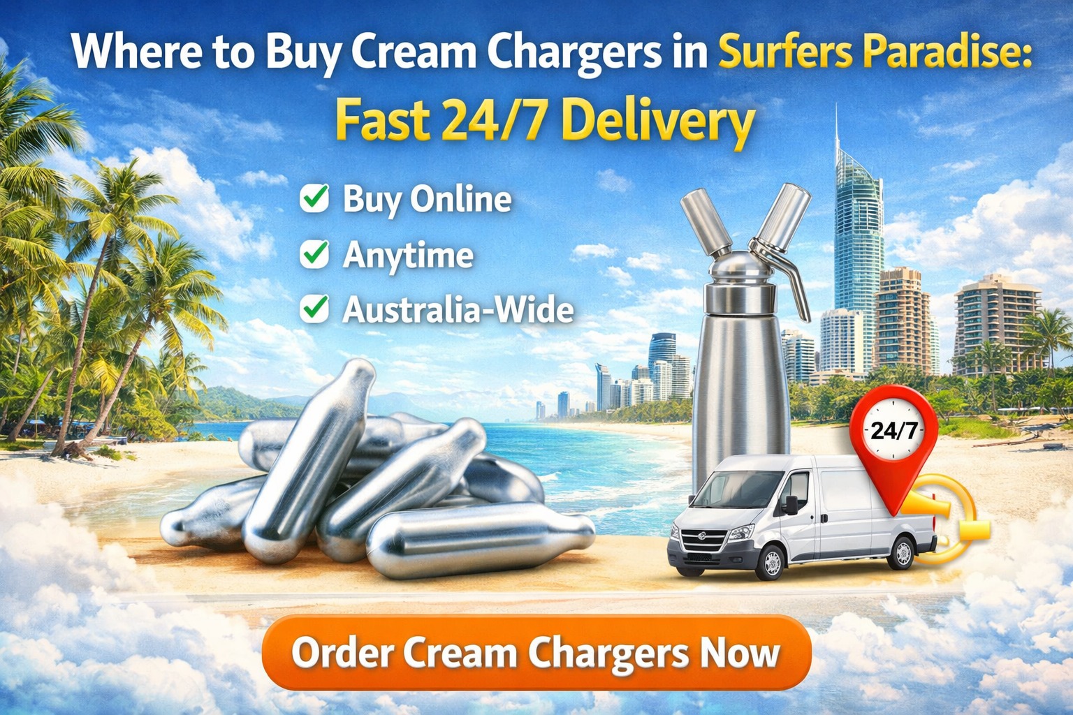 Looking for fast and reliable nang delivery Gold Coast or cream chargers delivery near me? Cream Chargers Gold Coast is your trusted local supplier for premium nangs Gold Coast and high-quality N2O cream chargers.