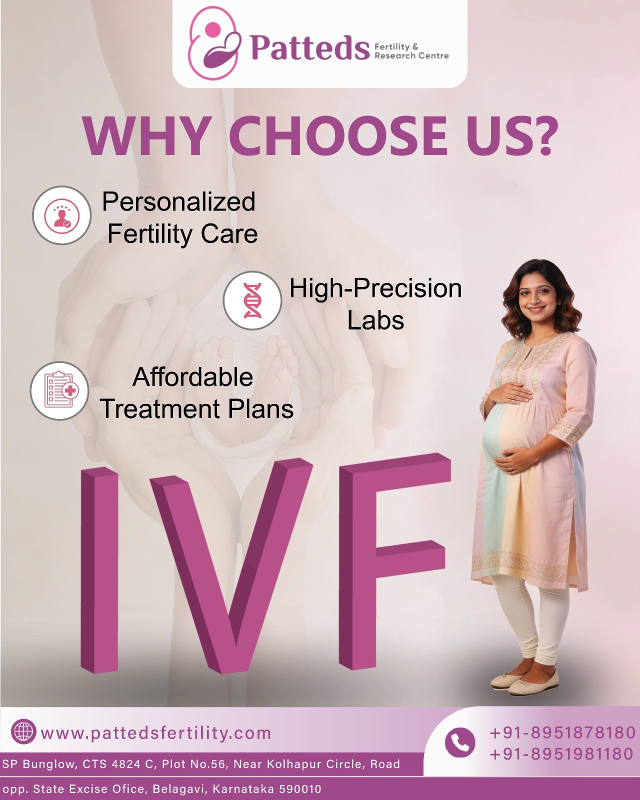 Patteds Fertility and Research Centre is a premier healthcare institution dedicated to providing advanced fertility treatments and reproductive research. We specialize in helping couples achieve their dream of parenthood through cutting-edge technology and compassionate care. Our Core Services: IVF (In-Vitro Fertilization): Advanced laboratory procedures for higher success rates. IUI (Intrauterine Insemination): Effective solutions for various fertility challenges. ICSI & Egg Freezing: Specialized treatments for complex cases. Male Infertility Solutions: Comprehensive diagnostics and treatments. Research-Driven Care: Utilizing the latest scientific advancements in reproductive medicine. At Patteds Fertility, we combine clinical expertise with a personalized approach to ensure the best possible outcomes for our patients.